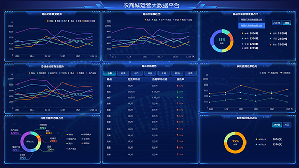 将市场内多维度数据进行可视化呈现,提供了一套全面、稳定、高效的综合数据展示平台,帮助市场快速整合所有业务数据,轻松进行各指标分析。数据采集覆盖各类平台渠道,包括车流统计、人流统计、仓储货物信息、农残检测、价格公示、商铺租赁等。同时支持个性化定制,满足不同市场场景所需。