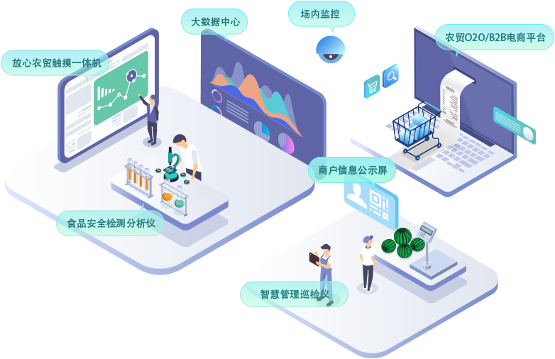蜂鸟视图以政策为导向、数据为核心,高度定制化总集系统为支撑,构建“一个平台、多个系统”融合的农批市场信息化管理平台。实现食品安全溯源、农残检测、车辆管理、安消防管理、商户档案管理、物业管控与道闸门岗智能结算等前沿科技解决方案。